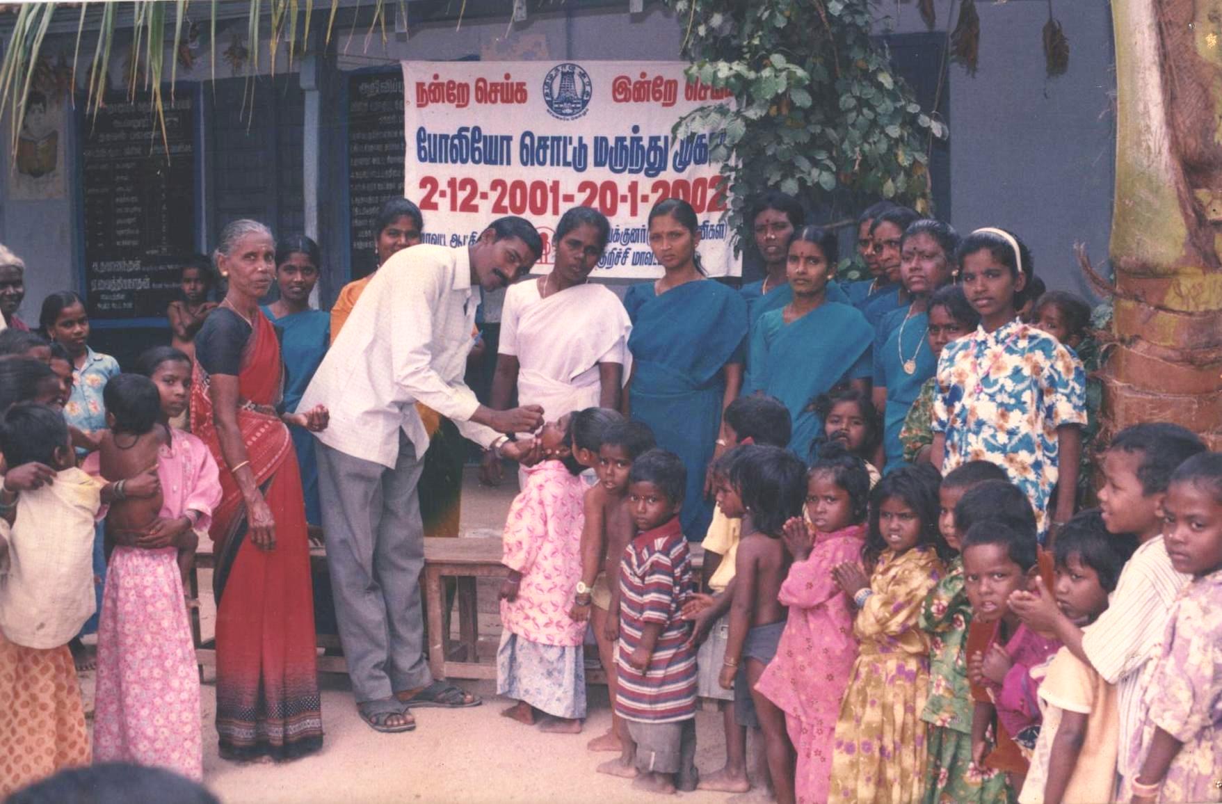 With special reference to polio eradication programme, we organize polio eradication programme in coordination with the health department in Koovanur and adjoining villages on 02/12/2001 and 20/01/2002 two days, more numbers of children in the age group of under 5 age were benefited through this programme